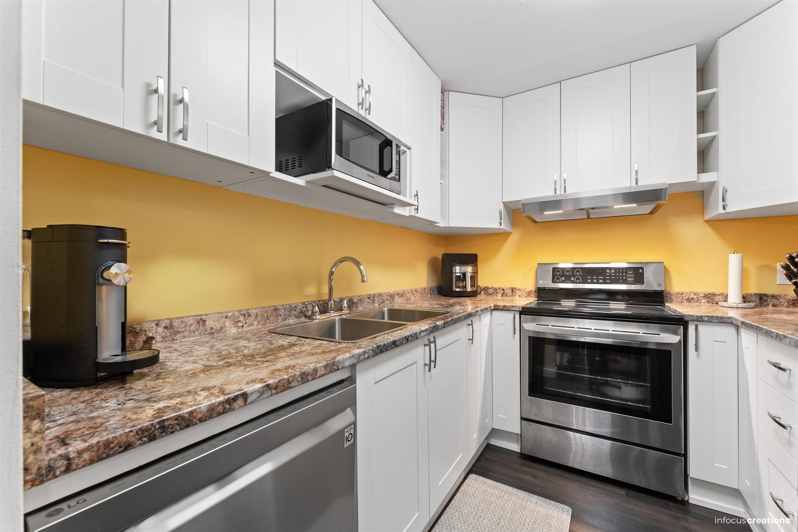 Beautifully updated 2-storey, 2-bed, 2-bath south-facing corner unit with new windows, roof, and exterior upgrades. Fresh paint, new flooring, and brand-new appliances throughout. The kitchen features updated countertops, and both bathrooms are fully renovated. Enjoy an open-concept living/dining area with a modern gas fireplace and sliding doors to a private patio with green space. Upstairs offers two spacious bedrooms and in-unit laundry. Carport at your doorstep, plus a central location near all amenities and District 1881.Move-in ready—don’t miss out!