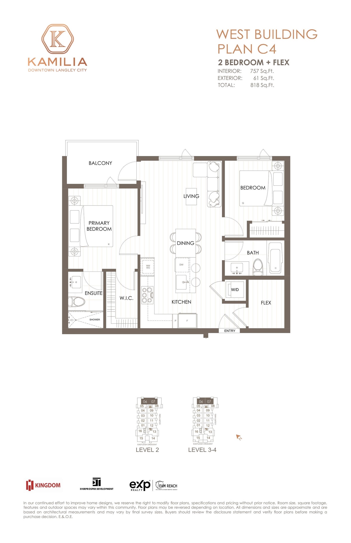 Brand-new presale at Kamilia by Kingdom & Everprosper Developments in Downtown Langley. This 2 bed + flex, 2 bath home features a smart layout with 9’ ceilings, A/C, smart home security, built-in organizers, and in-suite laundry. Modern kitchen with full-size stainless steel appliances and island. Includes 1 EV-ready parking stall. Over 19,000 sq ft of indoor/outdoor amenities including fitness, lounge, and co-working spaces. Steps to the future SkyTrain at 203 St & Industrial Ave. Presentation Centre at 20500 56 Ave, open Sat–Sun 12–5 PM. Estimated completion Winter 2028.